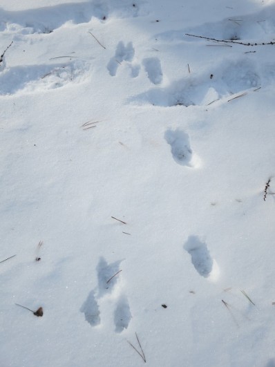 冬になると雪の上の足跡でテラスの森の様子が窺えます。