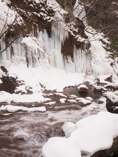 横谷峡の目玉、屏風岩の氷瀑があります。
