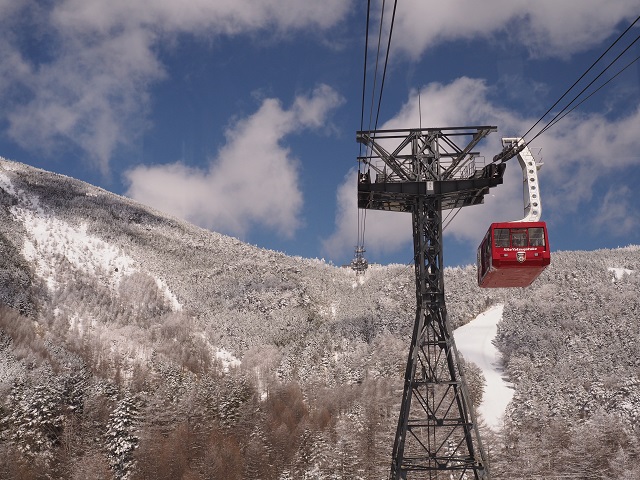 ロープウェイからの景色は真冬に逆戻り。