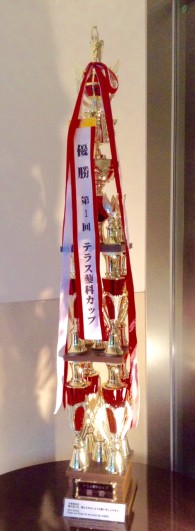 優勝者の名前が入ったトロフィー(140cm)はロビーに飾らせていただいておりますので、