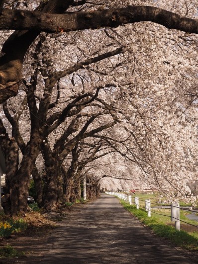 上の写真は昨日行ってきた岡谷市の横河川の桜並木です。