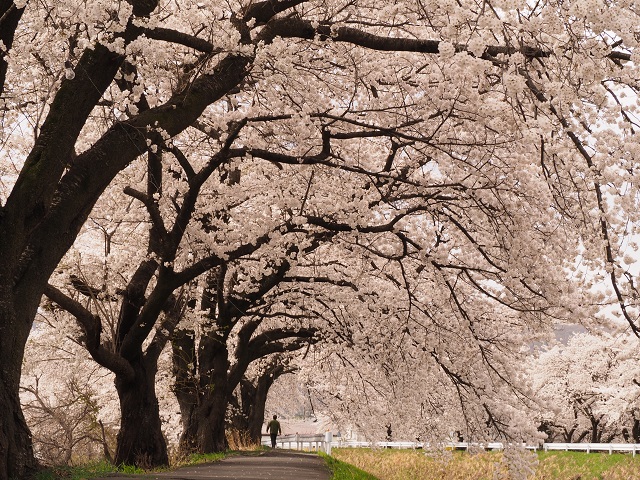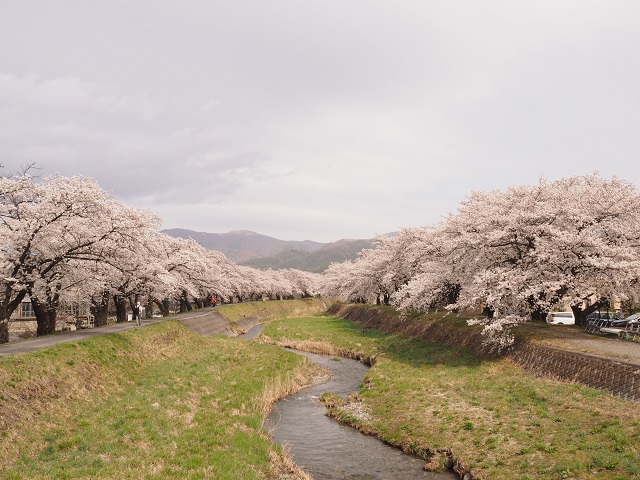 この桜並木は諏訪湖河口から約4kmにわたりソメイヨシノを中心に