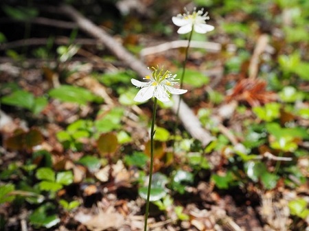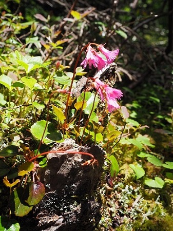 代わりに登山道脇にはイワカガミ(写真左)とミツバオウレ(写真右)が