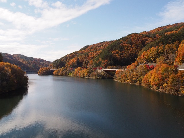 この湖は人口湖で箕輪ダムのダム湖です。