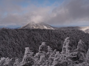 ロープウェイの車窓からは前日の雪と冷え込みで見事な樹氷を見ることが出来ました。