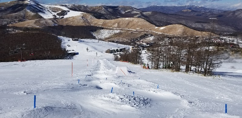 スキー場上部にはスノーパークとモーグルコースがあり、