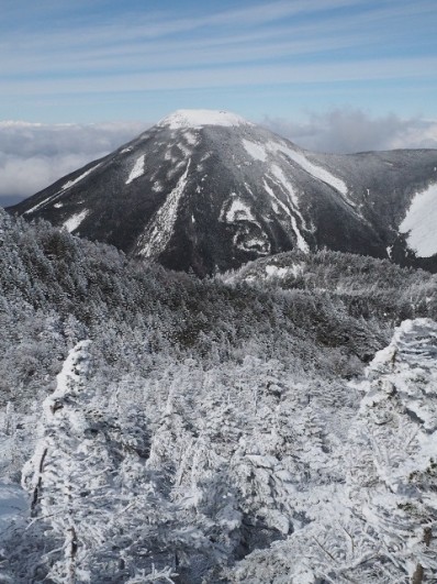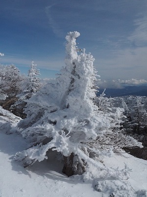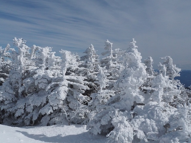 山頂の樹氷モンスターたちはこのところの寒さで少し成長しているようでした。