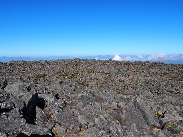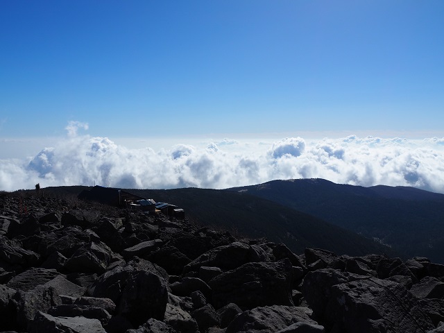 蓼科山の山頂は岩がゴツゴツ広がっている別世界と言った感じです。