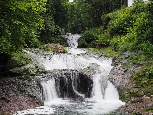 御射鹿池からおしどり隠しの滝に来ると「静から動へ」といった感じです。