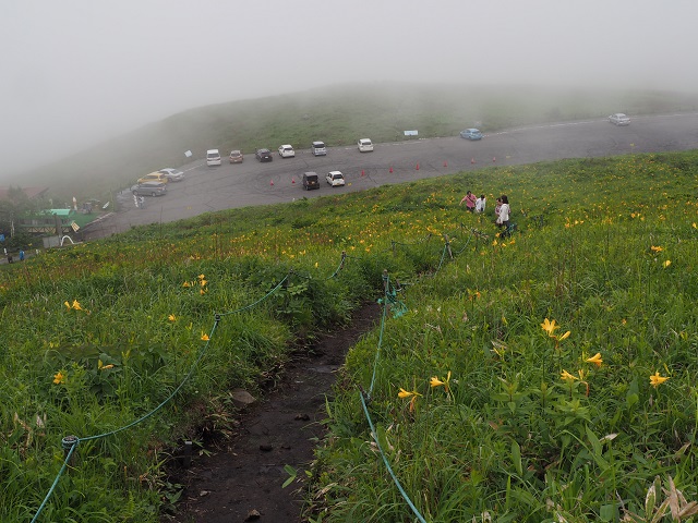 この日も霧の中、ニッコウキスゲを見に行って来ました。