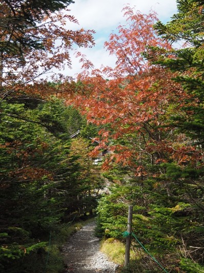 北横岳への登山途中、山小屋の手前では早くもいい感じに色づいている