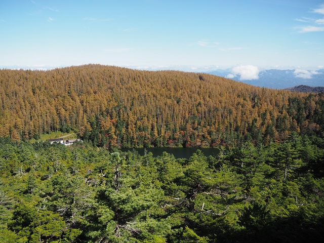 標高は2000mほど場所にありますのでカラマツの黄葉はまだ見頃で、