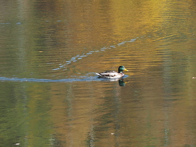 池の中では数匹の鴨が水面を優雅に泳いでいました。