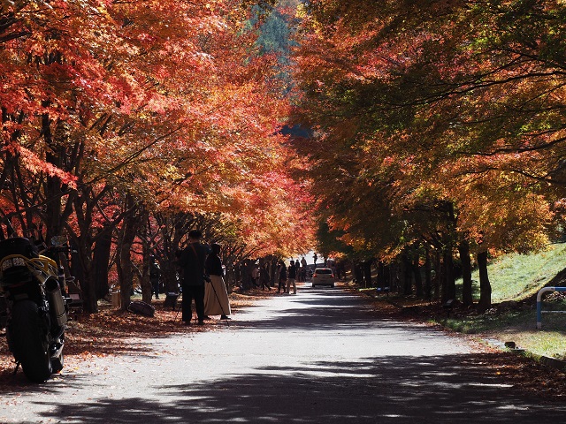 湖畔道路にはたくさんのもみじが植えられています。