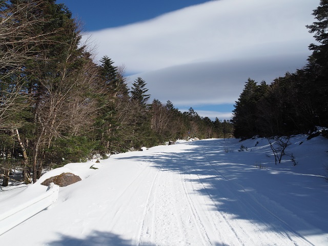 冬期通行止めの国道299号線を歩き、高見石と白駒池を巡るコースです。