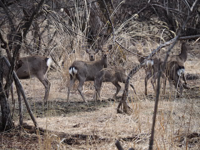 森の中にはまだ草がないので何を食べているのでしょうかね?