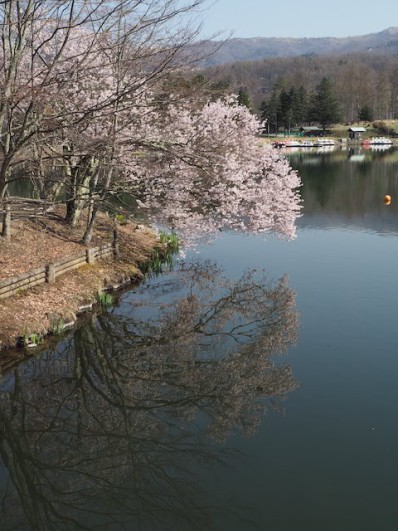 以前ブログで紹介した蓼科湖の水芭蕉はこの山桜の近くにあるのですが、