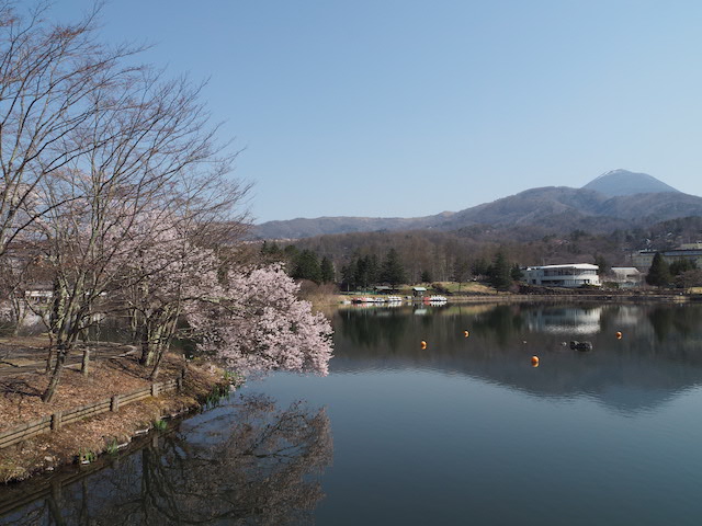 蓼科湖畔のソメイヨシノが満開です。