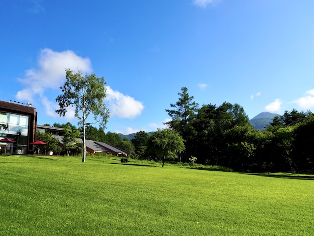 センターガーデンの芝生も青々と、蓼科山もよく見えます。。