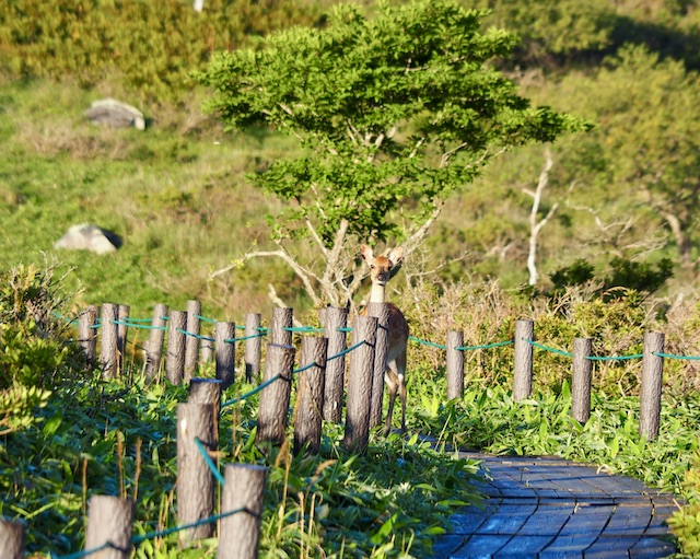 車山肩への木道の途中でシカさんと鉢合わせ!