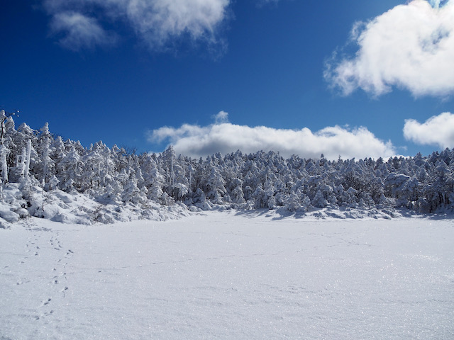 七つ池も真っ白です。