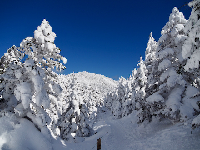 登山道は山頂まで雪道、でも凍っておらず締まった雪でしたので歩きやすかったです。