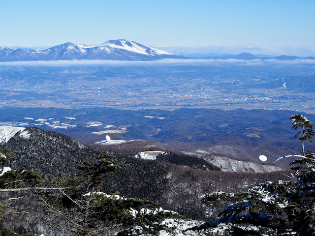 北峰へ移動して、西の方角を見ると薄っら雪を被った浅間山が良く見えます。