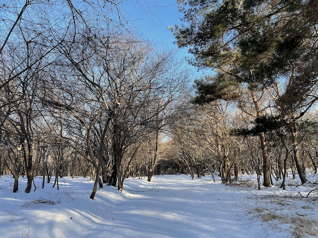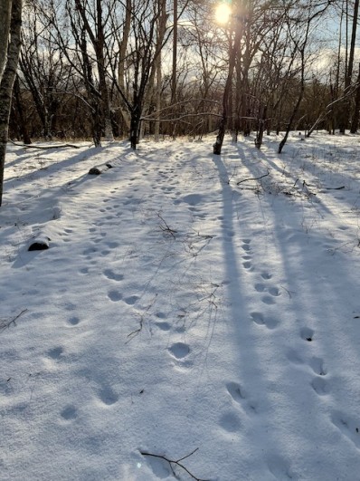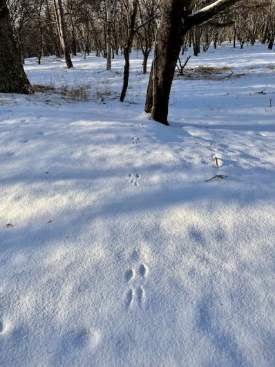 遊歩道には無数の動物達の足跡がありましたが、昨夜の吹雪で半分埋もれていました。