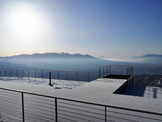 北西に北アルプス、北東に浅間山、そして東に八ヶ岳連峰と、とてもクリアに見えます。