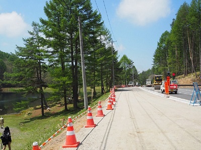 昨年から始まった池周辺の工事もまもなく終わりで、現在は周辺道路と歩道の拡張工事が行われています。6月には終了するそうです。春先には池の近くに立派な駐車場も完成しました。