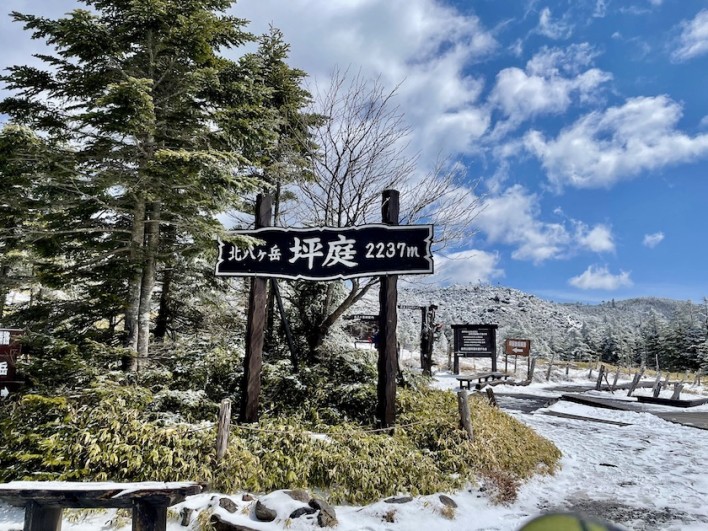 北横岳登山道は残雪の上に新雪が積もり、ちょっと歩きずらかったです。私は軽アイゼンをつけて登りました。