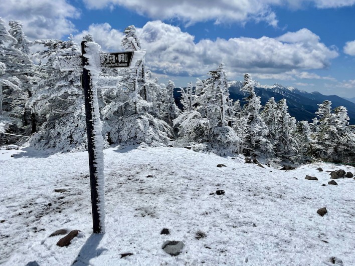 いつもの道?を1時間もかからず山頂に到着。山頂も気温は低かったですが、風が弱く太陽も顔を出していたのであまり寒さは感じませんでした。