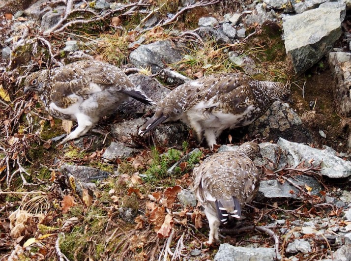 今回は山小屋1泊テント2泊の3泊4日。奥穂高岳にも登ってきました。奥穂の山小屋近くでは雷鳥に遭遇。穂高には何度も来ていますが雷鳥と出会えたのは初めてです。全部で8羽、大きさは同じですが親子だと思います。