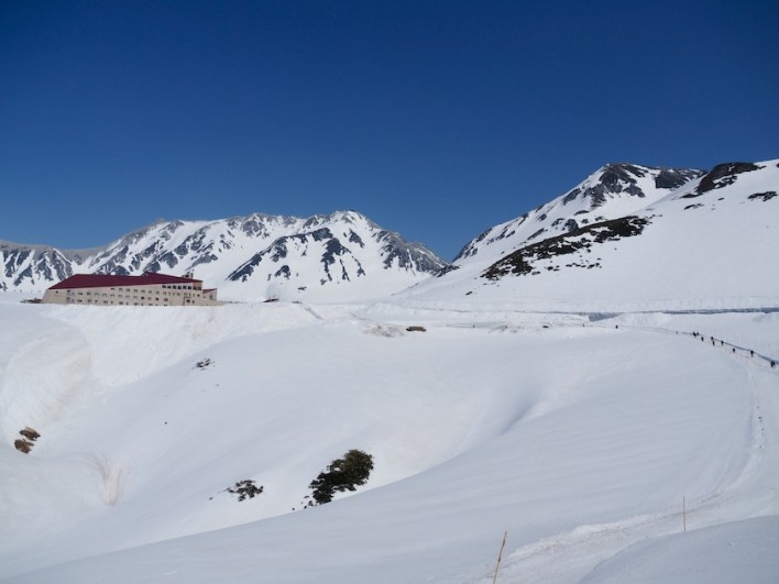 4月中旬から6月下旬まで室堂ターミナルから500mほど高原バス道路の片側一車線を歩行者が歩けるようウォーキングゾーンとして開放しています。