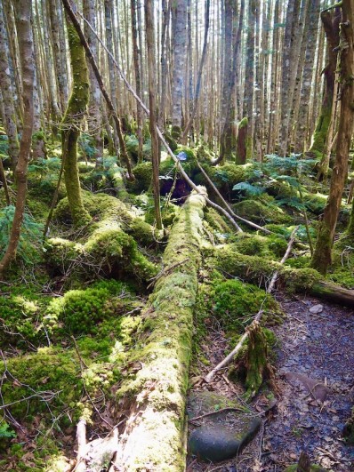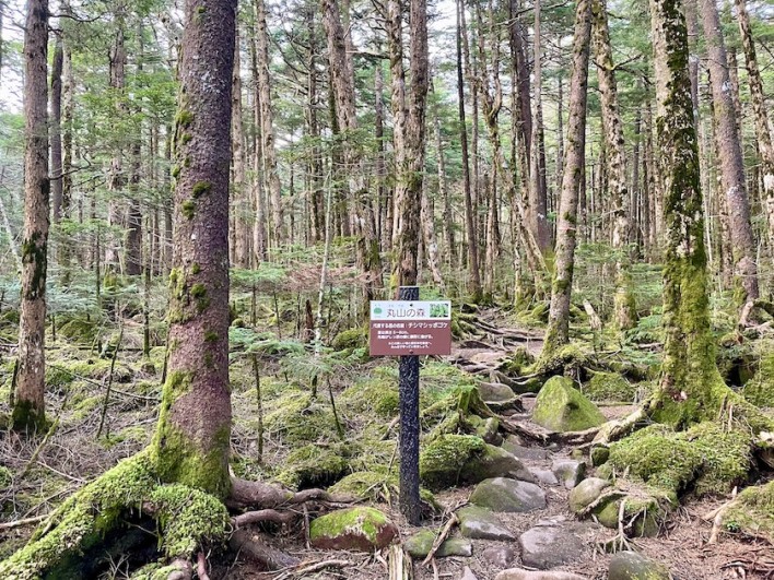 白駒池周辺には数カ所の苔の森がありそれぞれに名前が付いていて、この森は「丸山の森」。もしかするとこの森が一番人通りが少ない森かも知れません。苔の森の中、石がゴロゴロしている登山道を登って行きます。結構急な登りで苔を観察しつつ休憩しながら登りました。