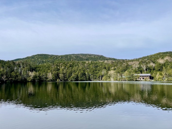 池畔にはまだ早朝だったので軽装の観光の方は見当たらず、皆さんしっかりとした登山の格好をしている方ばかりでした。これからニュウや天狗方面に向かわれるのだと思います。私は池を半周して麦草峠へ戻ることにしました。