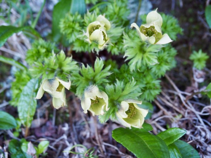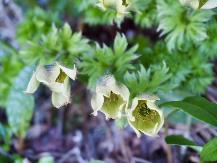 淡いクリーム色の花で、ふわふらしたうぶ毛が付いているのが特徴です。開花が6月上旬なので普通は残雪を登って見に行く花ですが、まだ残っていてラッキーでした。