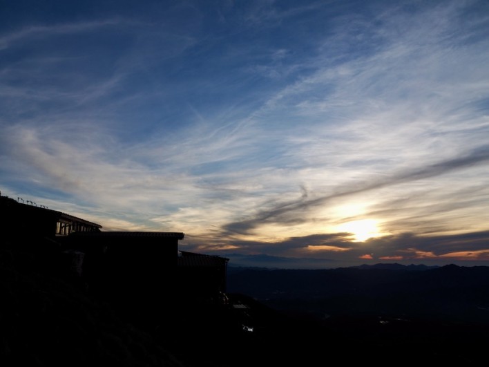 山小屋に着き、受付を済ませると夕食までの時間はのんびりと景色を眺めなら過ごしました。17時に夕食ととり、その後は19時ごろに外へ出て夕焼け鑑賞、そして就寝。翌朝は4時ごろ起床、4時半から朝焼け鑑賞を楽しみました。