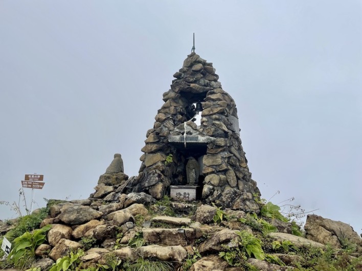 展望リフトを降り、少し階段を登ると地蔵の頭の地蔵ケルン(標高1676m)に到着します。
