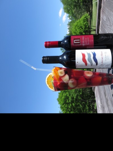 長野県産のリンゴをはじめ、さまざまなフレッシュフルーツをスペインワインと混ぜ合わせ
