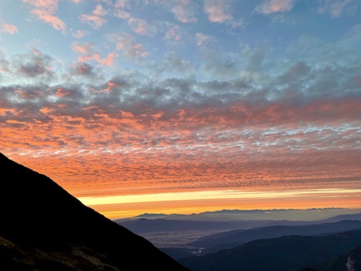 夕食前には甲斐駒の山肌を赤く染めるアーベントロートときれいな鱗雲の夕焼けを見ることが出来ました。