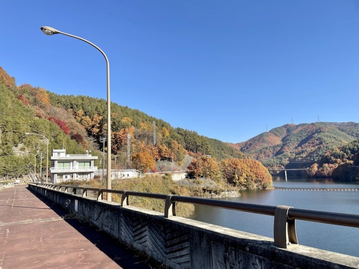 以前ここからダム湖を1日かけてぐるりと一周するトレッキングをしましたが、今日は準備をして来なかったので紅葉を眺めるだけです。