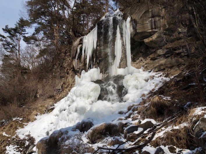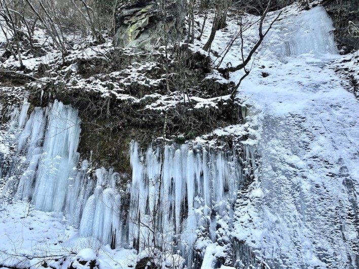 思った通り氷瀑は立派に成長していました。今年は雪が少ないので氷瀑の部分がよく分かります。朝9時台だったのですが誰も来ず、独占して氷瀑を眺めることが出来ました。