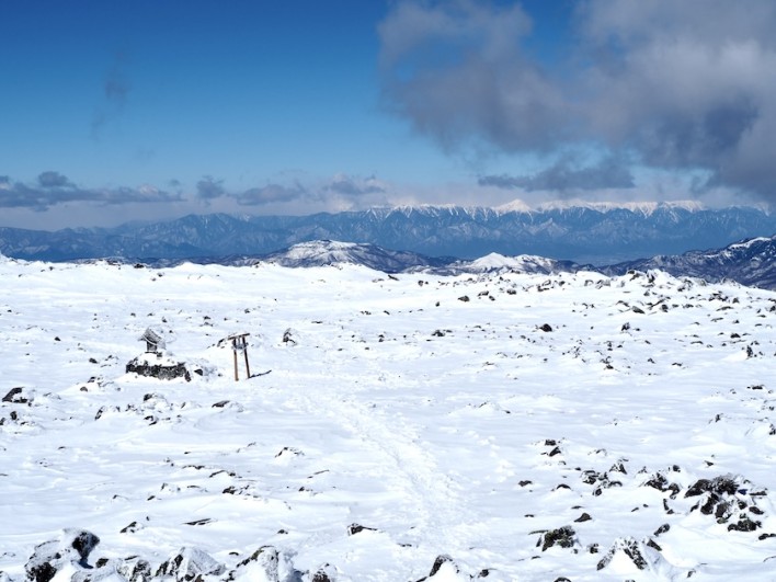 気温が低いため視界がとてもクリアで、北・中央・南の各アルプスはよく見えます。八ヶ岳の山々は少し雲がかかっていましたが、それも徐々に無くなっていきました。