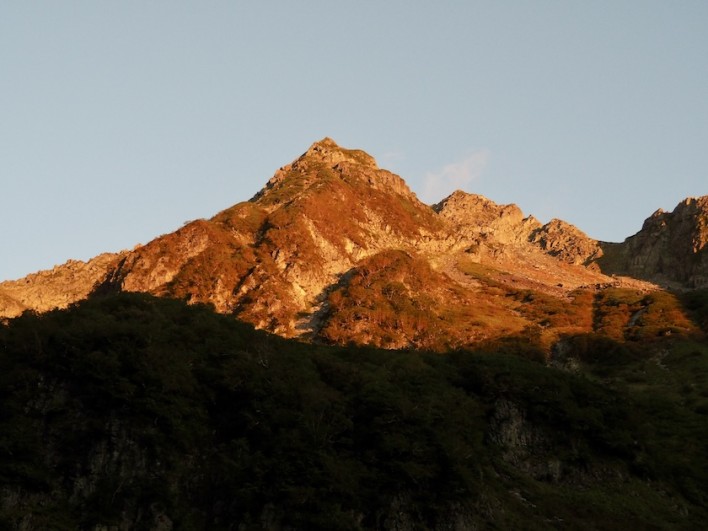 涸沢の名物の一つ、モルゲンロートも見ることが出来、山肌を赤く染めてくれました。