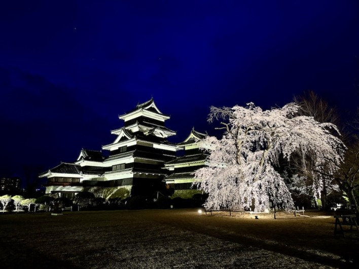先日(4月6日)、松本城の「国宝松本城夜桜会」に行って来ました。今年の夜桜会は4月4日から13日までで17時30分から21時までは本丸庭園が無料開放されます。