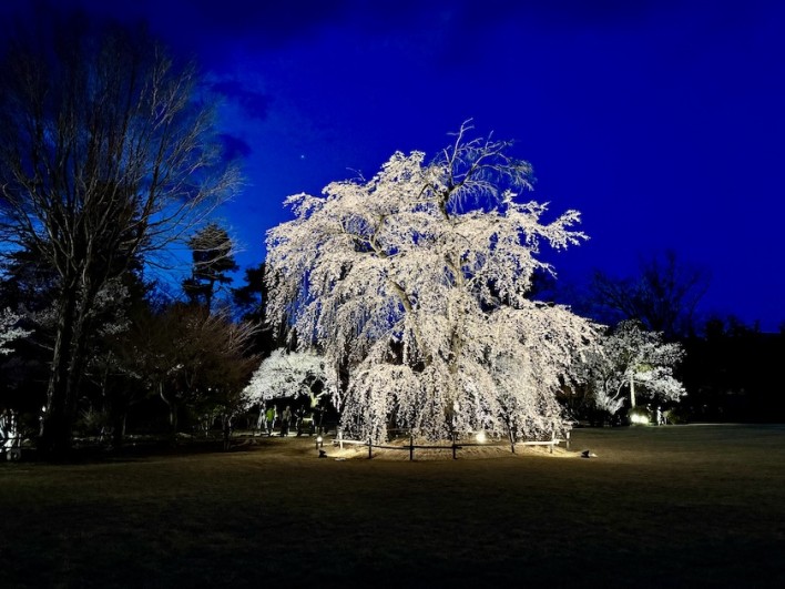 本丸庭園をお城の方に進むと立派な枝垂れ桜があります。こちらの桜は丁度見頃になっていました。