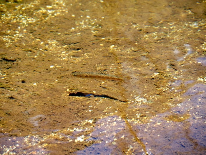 田代池は上高地で私の一番好きな場所です。八右衛門沢から流れだ土砂で堰き止めらて出来た浅い池で静かに水が流れています。青く澄んだ水の中を見るといわな?の稚魚が気持ち良さそうに泳いでいました。