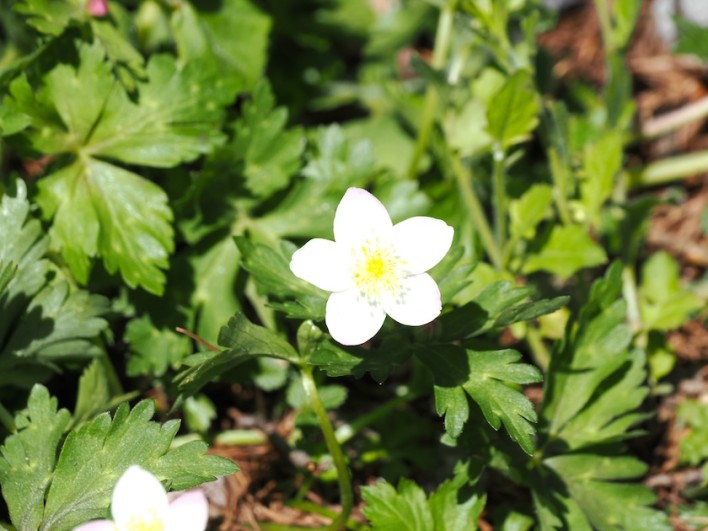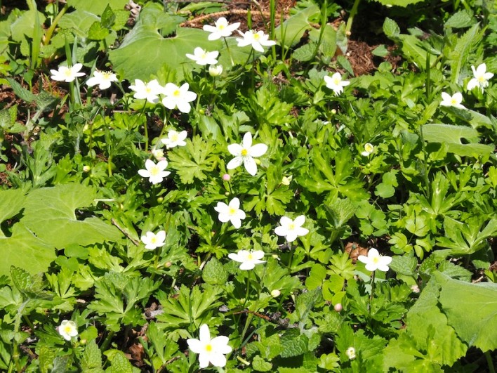 昼食後、河童橋近くの小柴平キャンプ場へ行ってみるとニリンソウが咲き始めていました。