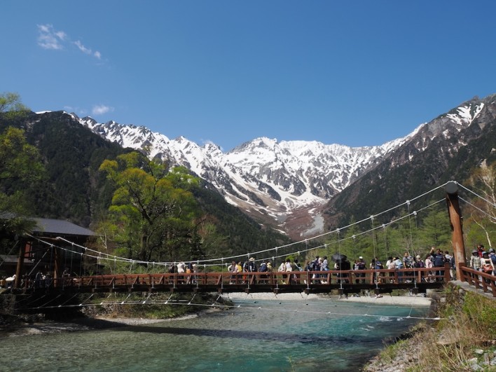 河童橋に到着すると、人、人、人。大変な賑わいです。